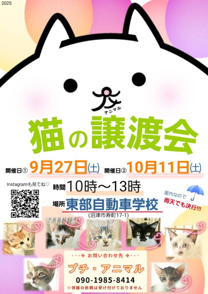 次はいつ??今後の譲渡会予定 9/27 10/5 10/11